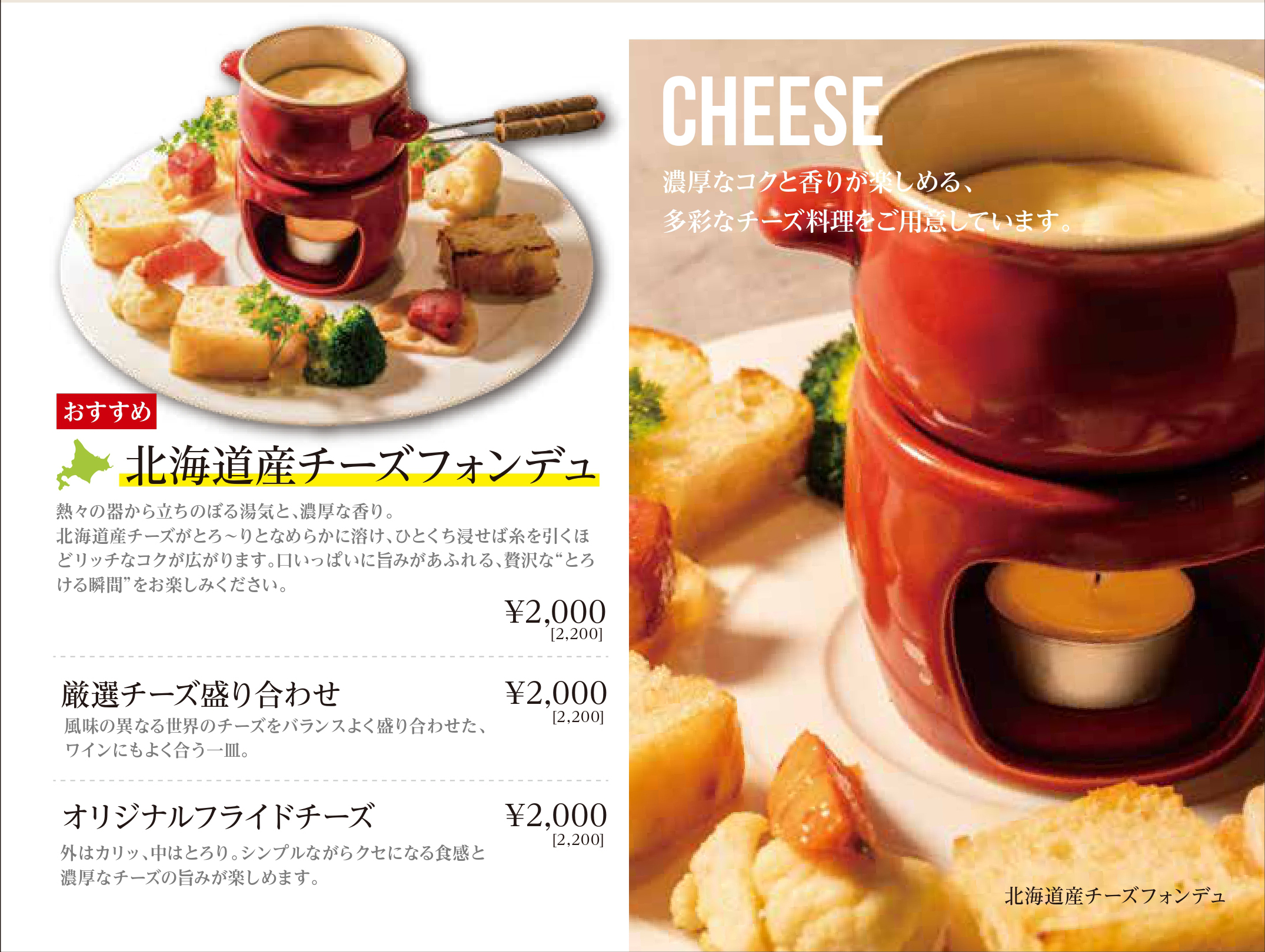 香り・コク・口溶けのバランスを楽しめるチーズ料理をご用意しています。