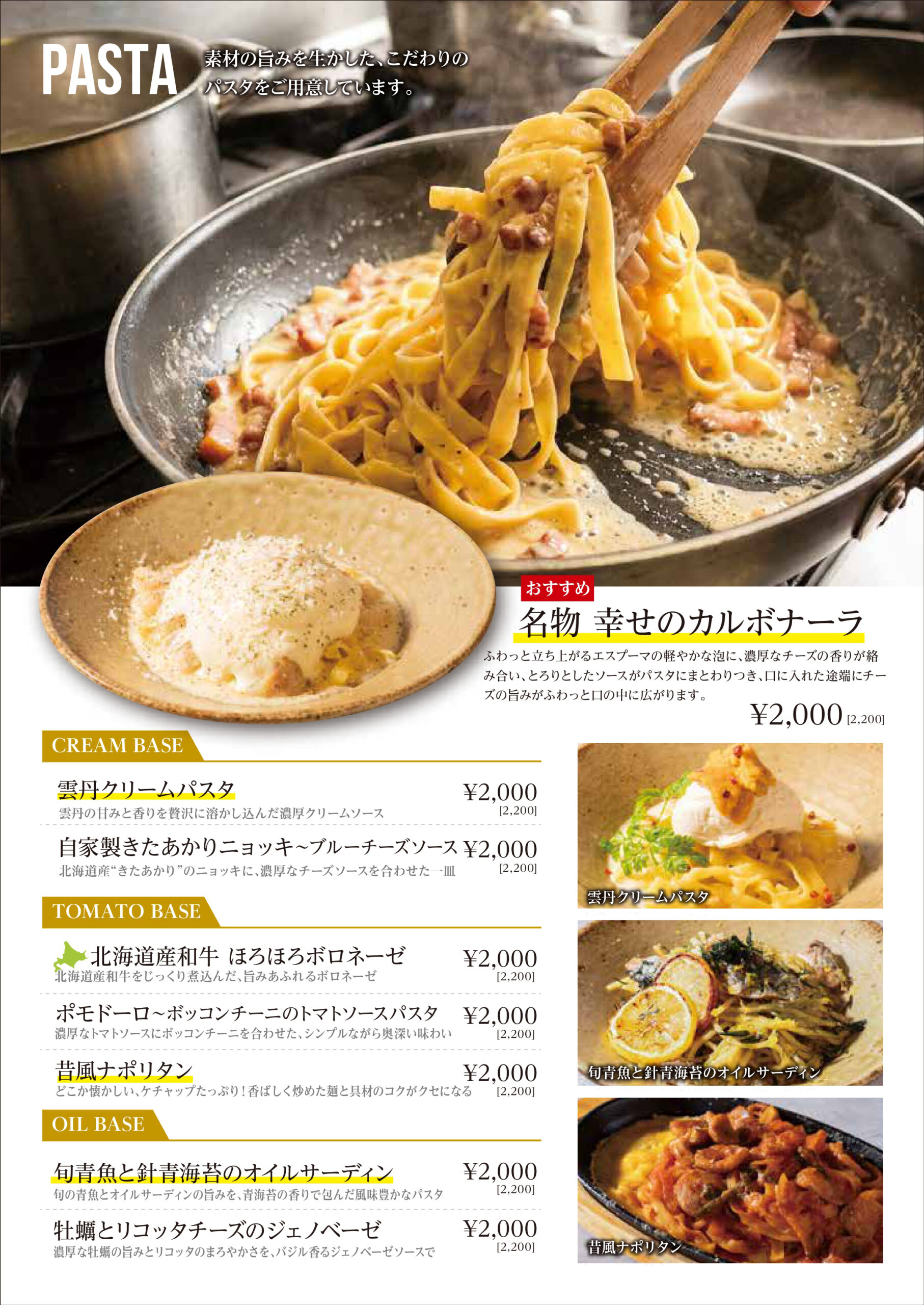 名物「幸せのカルボナーラ」をはじめ、